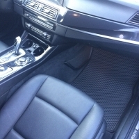 ЭВА — материал будущего. Полимерные коврики удерживают воду и грязь внутри ячеек так, что загрязнения не попадают на обувь и одежду даже на крутых виражах. Сами коврики EVA надежно закреплены на многоразовые липучки и подходят только для конкретного авто. У нас вы можете заказать автоковрики для BMW 5 (F10/F11) 2014 - 2017 в Балашихе с доставкой от производителя.