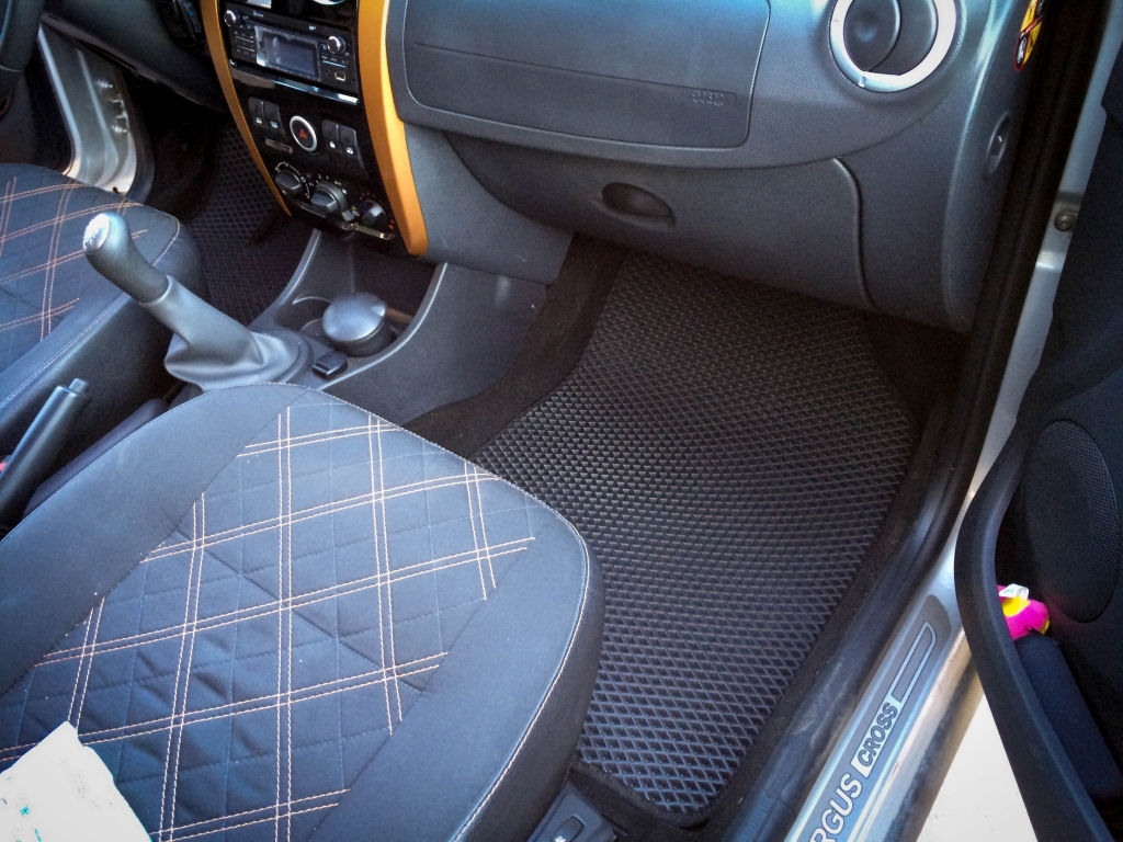 EVA коврики для автомобиля Lada Largus (5 мест) 2013 - наст. время — это лучший выбор. Покрытие из этого ячеистого полимерного материала покупают сотни автолюбителей. Коврики из ЭВА долговечные, прочные, красивые. Сроки службы изделий — от 5 лет. Они не выделяют вредных веществ, ничем не пахнут. Коврики защищают пол автомобиля от грязи и влаги, а салон — от лишней пыли.
