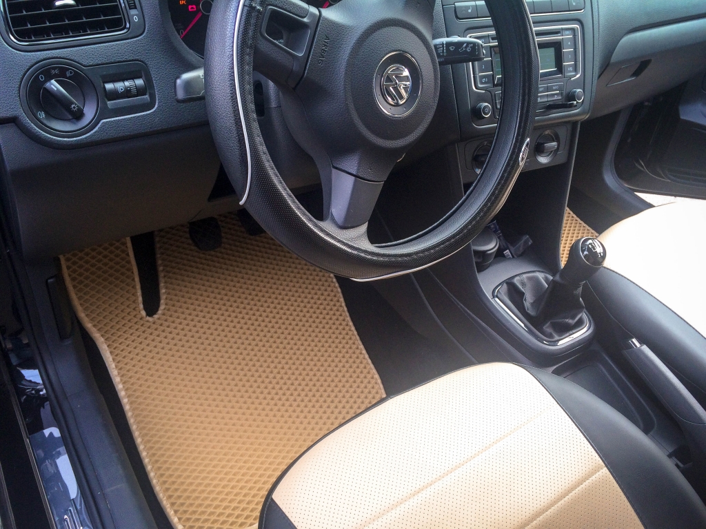 EVA коврики для автомобиля Volkswagen Polo V (седан) 2010 - 2020 — это лучший выбор. Покрытие из этого ячеистого полимерного материала покупают сотни автолюбителей. Коврики из ЭВА долговечные, прочные, красивые. Сроки службы изделий — от 5 лет. Они не выделяют вредных веществ, ничем не пахнут. Коврики защищают пол автомобиля от грязи и влаги, а салон — от лишней пыли.